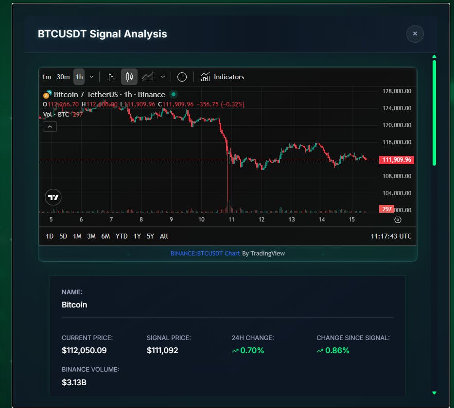 Currently, we don’t support paper trading, but we have a feature called "change since signal" on our crypto display page that shows whether the price of a specific currency has gone up or down since the signal was issued. Apart from that, if we can expand our platform within the ecosystem and attract more users, we’ll definitely add the strategy testing feature in the future. Additionally, we’ve outlined in our roadmap that we plan to enter the forex and stock markets and cover more crypto currencies in our analyses.