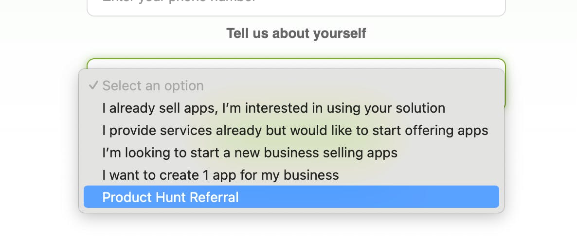 Select Product Hunt Referral in the trial form to get 90 days of free access to our Instant Reseller plan—automatically applied upon selection (see screenshot below).