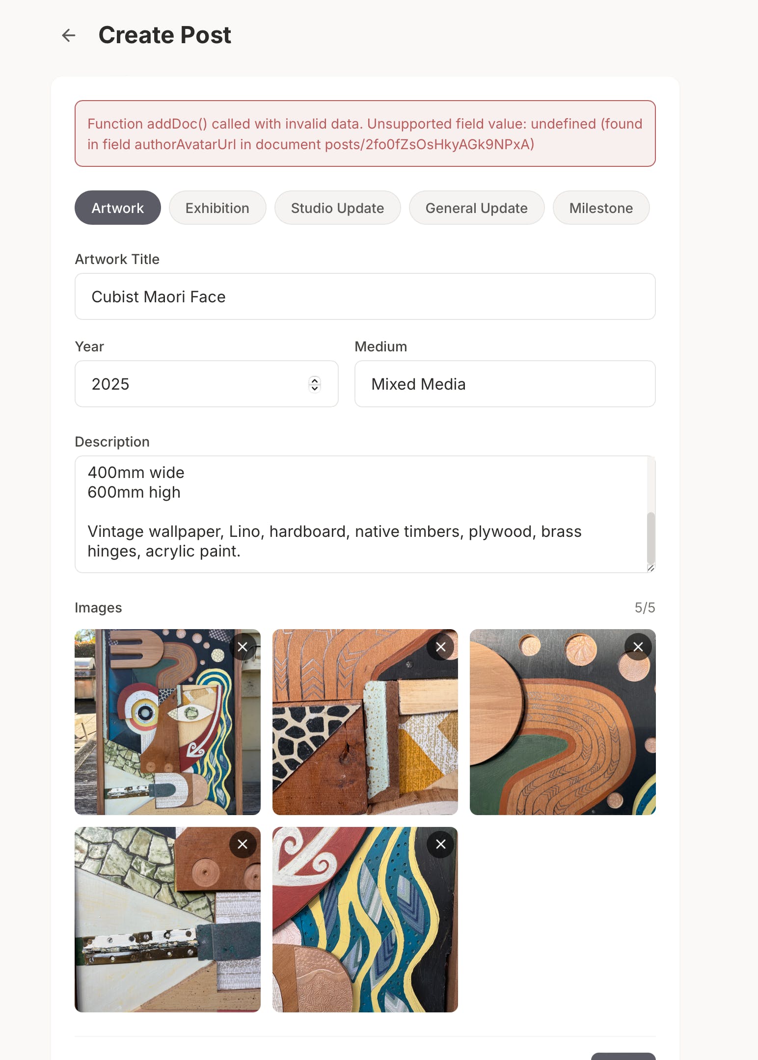 For artists who want deeper documentation, ArtNetwork integrates with StudioArchive.io, which acts as a system of record for works, editions, dimensions, and exhibition history. Posts can reference documented works without forcing heavy verification upfront.
