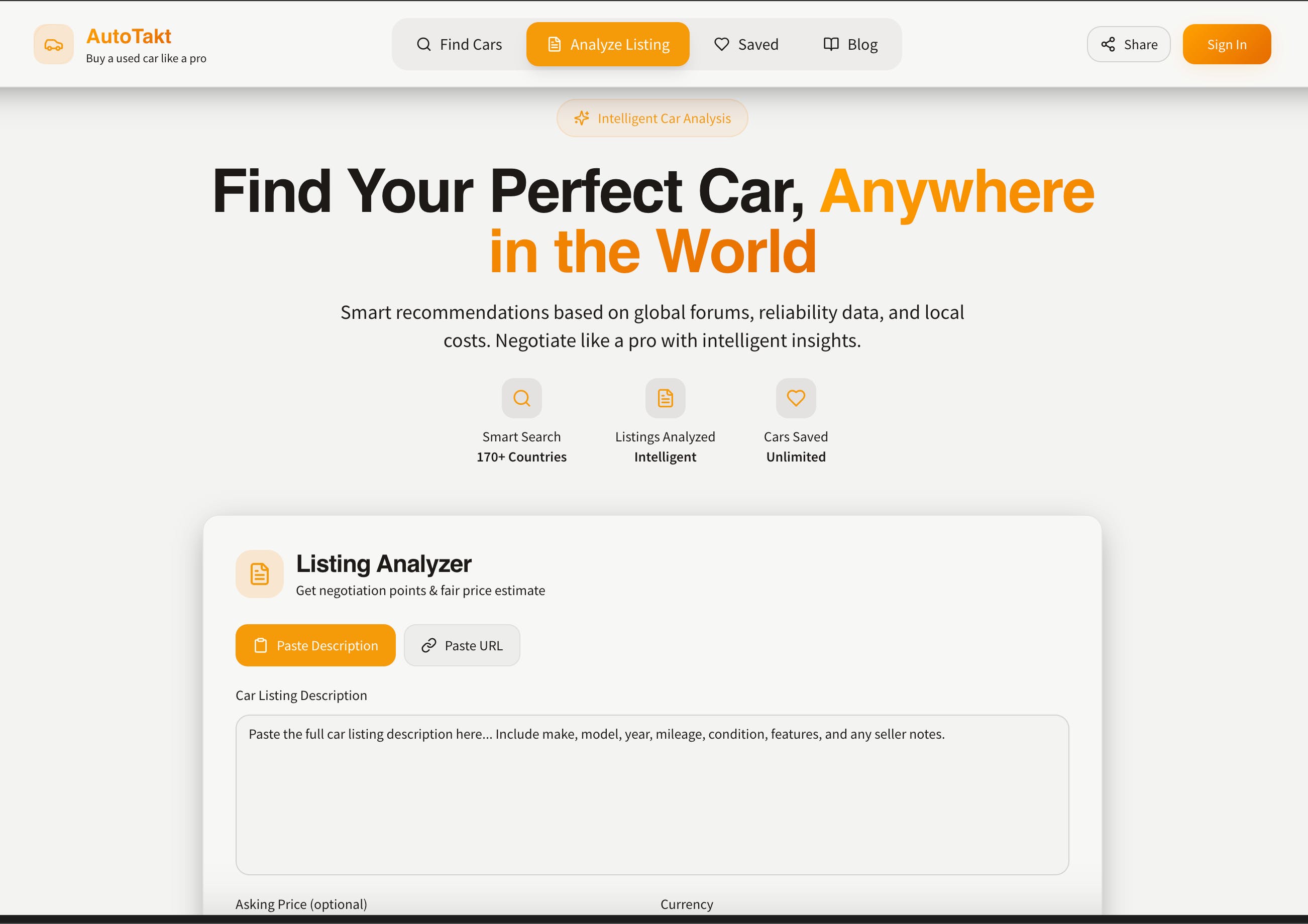 🚗 Listing Analyzer: This is the big one! You can now generate deep insights instantly - just paste a car description or drop in a direct URL. It’s a game-changer for evaluating listings quickly.