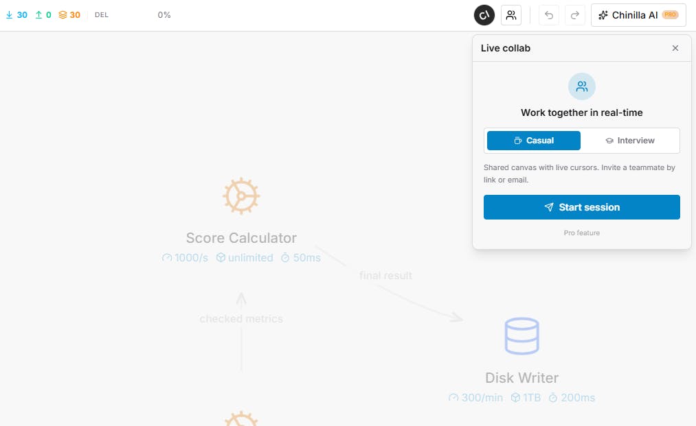 Design and review systems with your team in real time. Cursors, comments, the whole thing. Great for interview prep with a friend or arch reviews at work.