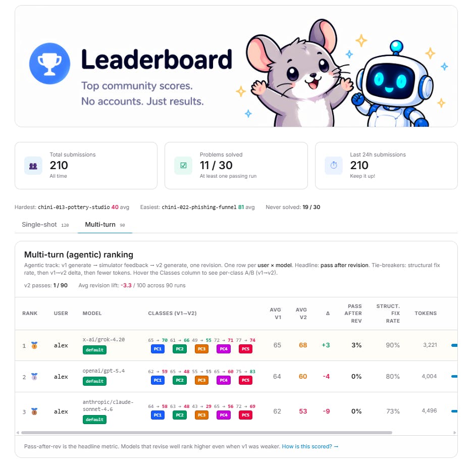 A benchmark for whether LLMs can design systems that actually survive failure. 30 problems, deterministic scoring, no LLM judge. Frontier models average 66–72/100, and none pass more than 9 of 30. Leaderboard is live.