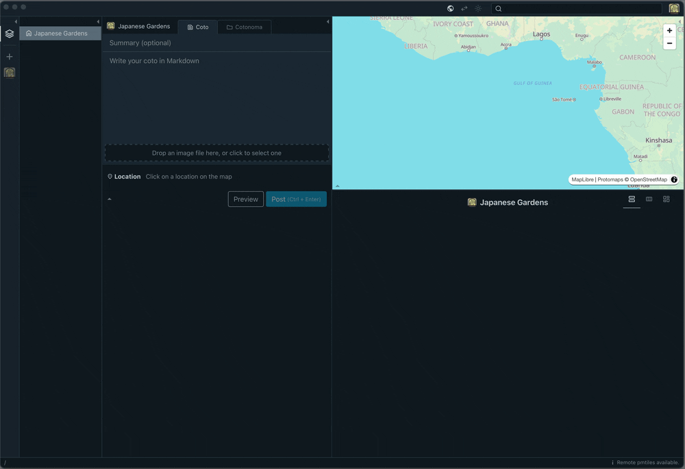 Cotoami is a desktop note-taking app with a built-in map. It makes input as easy as chatting, while enabling knowledge to grow from simple notes into structured, book-like content or vast networks of interconnected databases shared by many users.