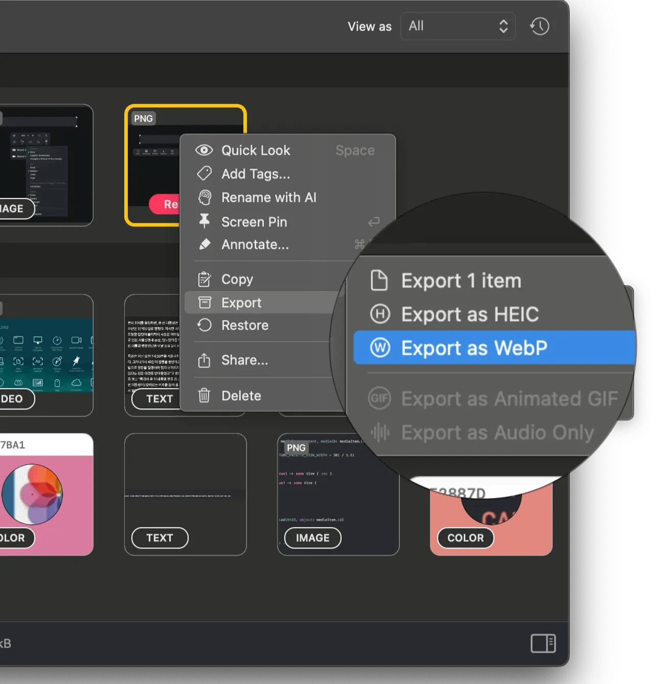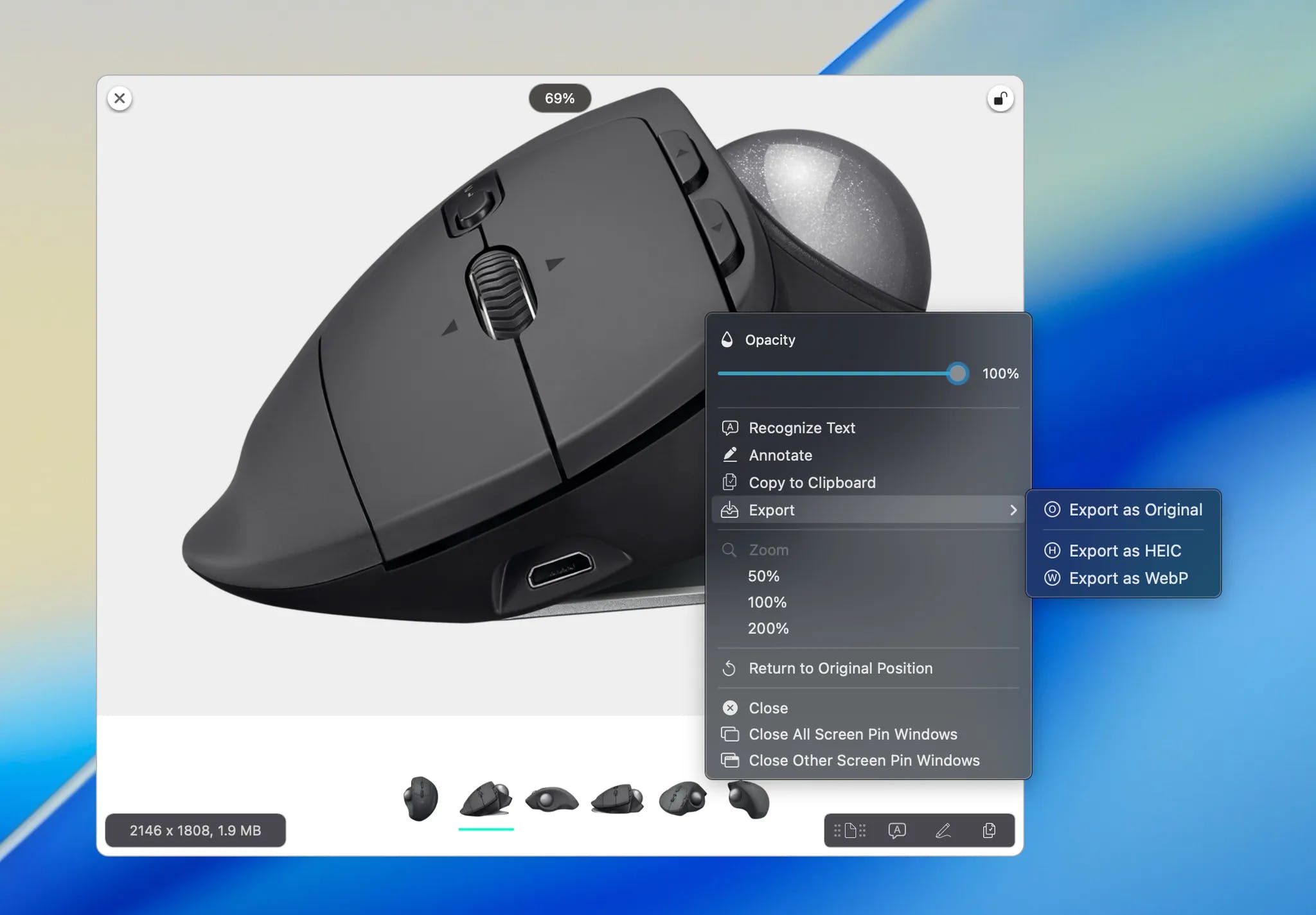 Added ability to export original image, HEIC, and WebP images in Annotation.