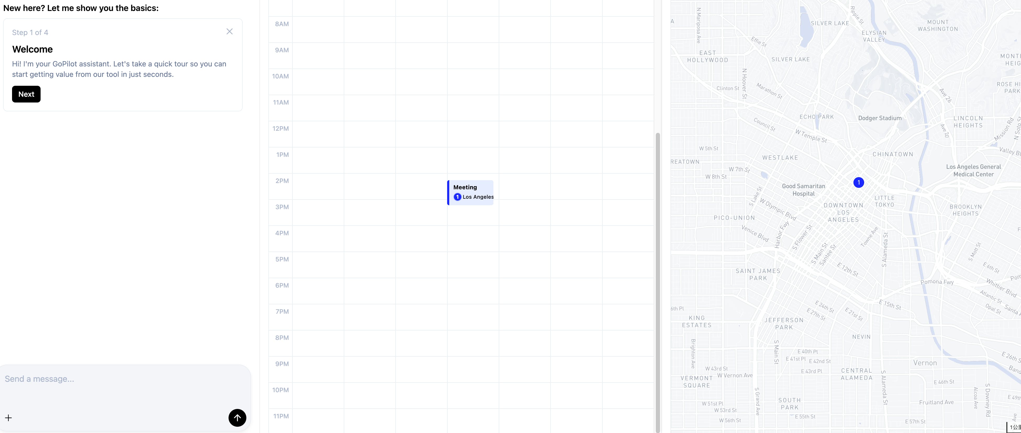 Gopilot visualizes your schedule on a map, detects impossible routes, and plans multi-city trips in seconds — all synced with Google Calendar.