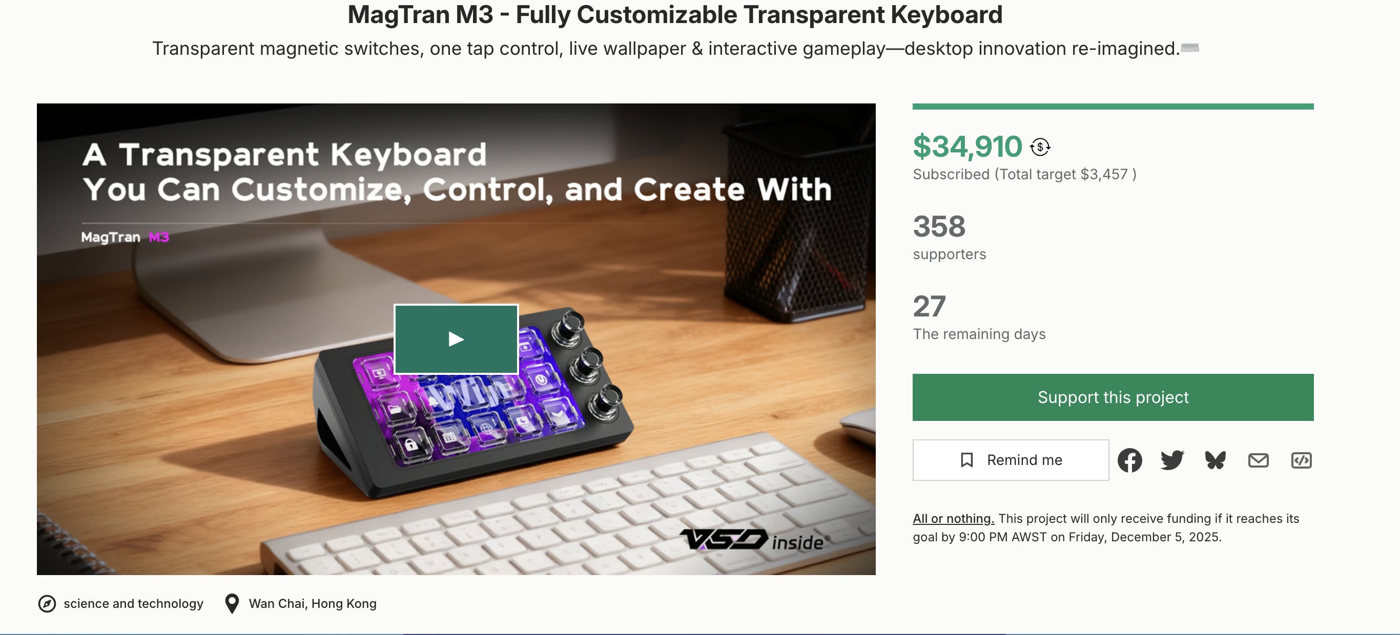 Meet MagTran M3 — The Fully Transparent, Fully Custom Streaming Console Designed for creators and streamers, M3 combines style and control like never before: 1. Stunning transparent body showcasing every detail 2. Fully customizable buttons, screens, and animations 3. Seamless control for streaming, editing, and content creation Bring soul and creativity back to your desktop.