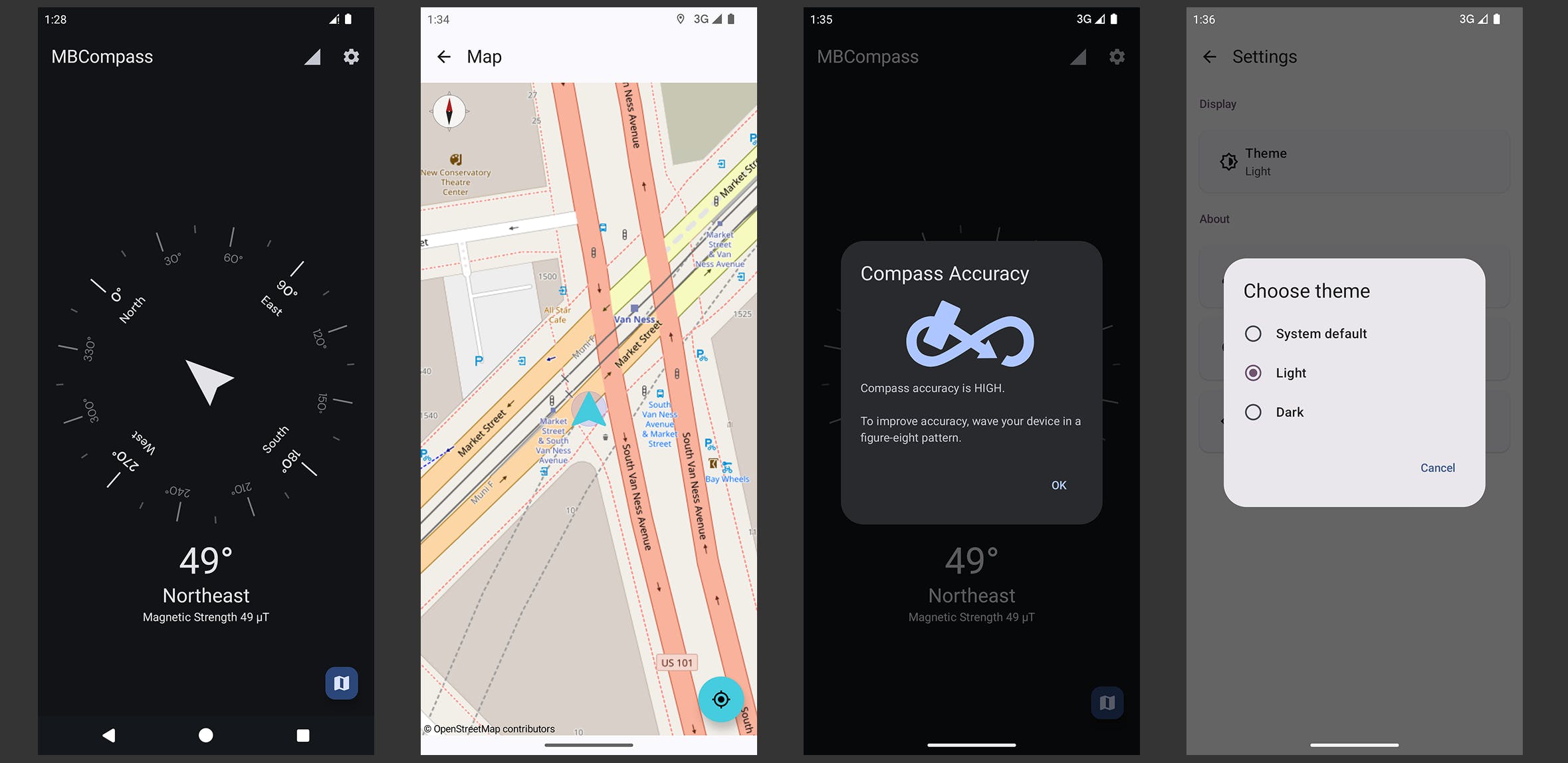 MBCompass is a modern, free, and open source Compass and Navigation app without Ads, IAP, or Tracking. That's support Compass and Navigation features like real-time GPS, OpenStreetMap support, clear cardinal direction, being lightweight and simple!