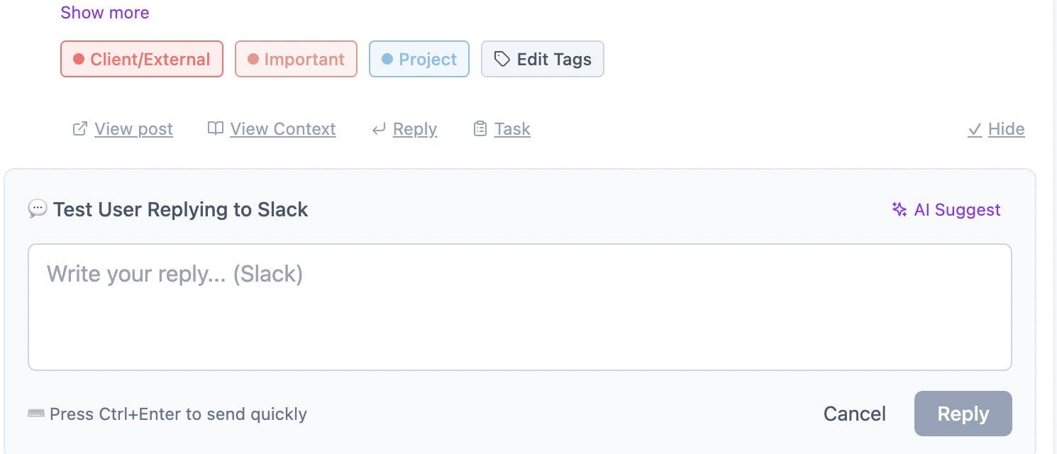 Just added AI Suggest! š Now you can get three reply suggestions based on past conversations, then select and edit before sending.
