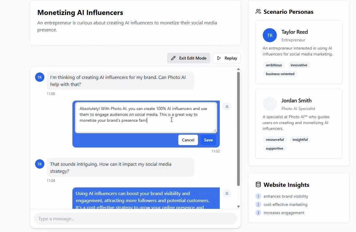 Added editing capabilities to Mock-Chat.com ! you can you manually edit the mock chat generated by AI and replay the video .