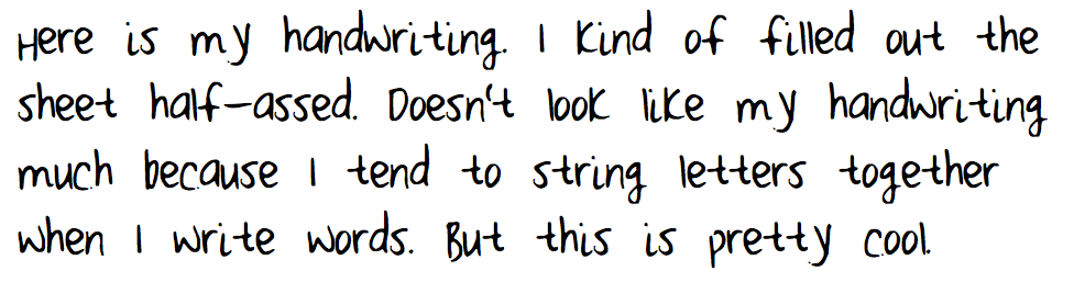This could be useful or useless depending on how good your handwriting is. Here's an example of a legible one that was posted online