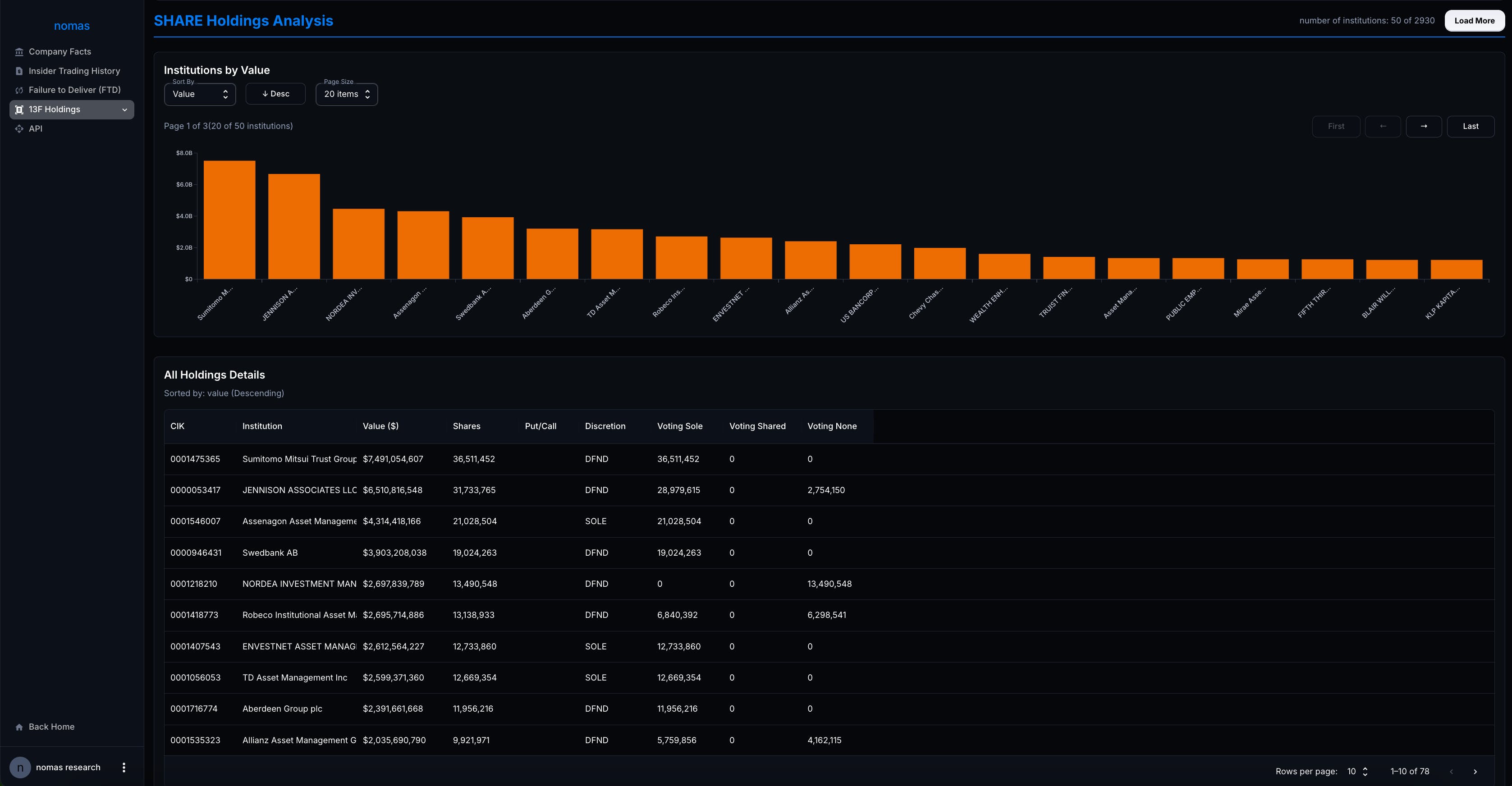 With Business Account, you get access to full 13F report with "Search via Security" which includes full report of SHARE holding, CALL and PUT holding and ranking, more on nomas.fyi