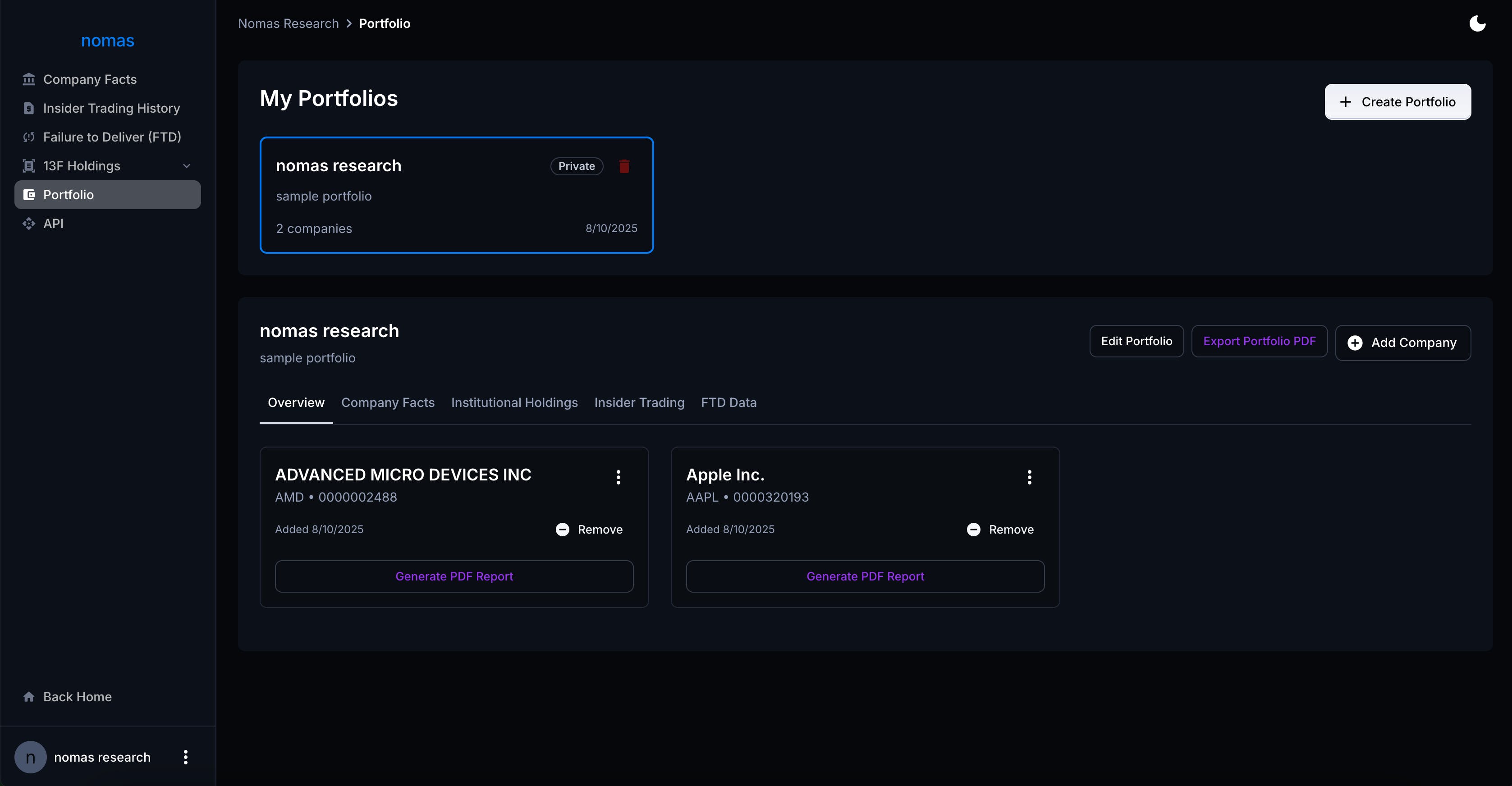 Track multiple companies in custom portfolios with: