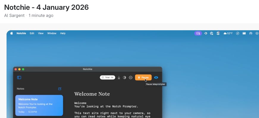 Another difference is that Notchie is a signed up, so there's no scary security warning as you get with NotchPrompter.