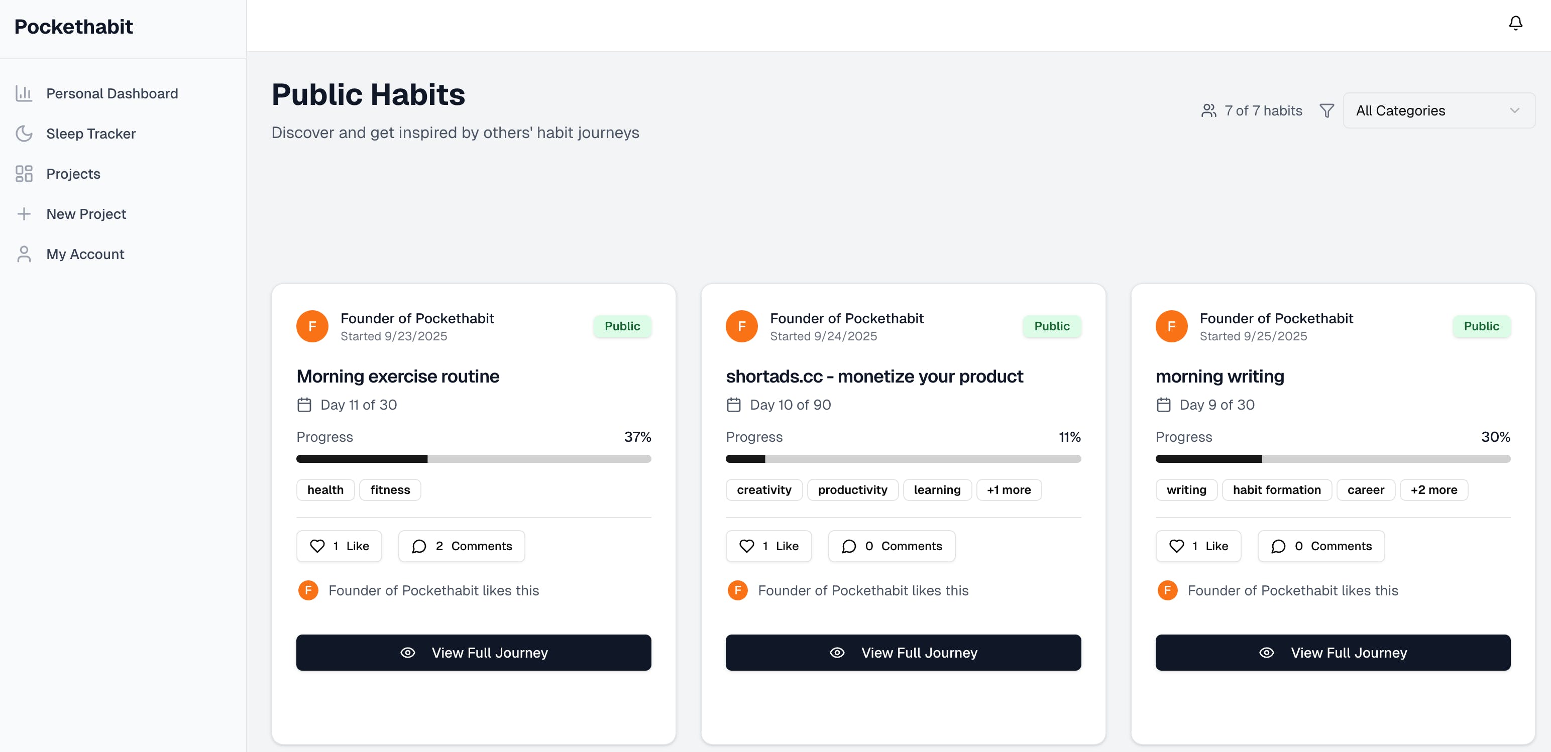 PocketHabit is more than a checklist. It's an AI-powered habit coach: daily reflections, weekly summaries, and science-backed sleep guidance to help you stay consistent long-term.