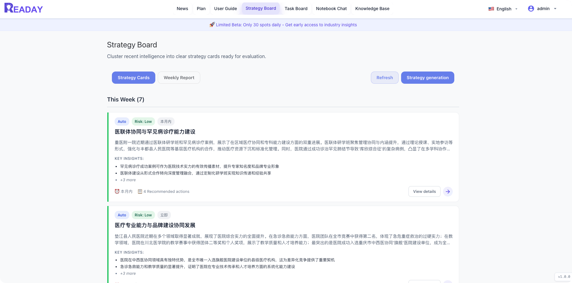 Now 'READAY' updated notebook chat, strategy board, task board, knowledge library, it is not only my news collector, but also an consultant based on my background, aim and passion.