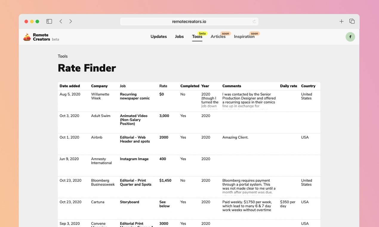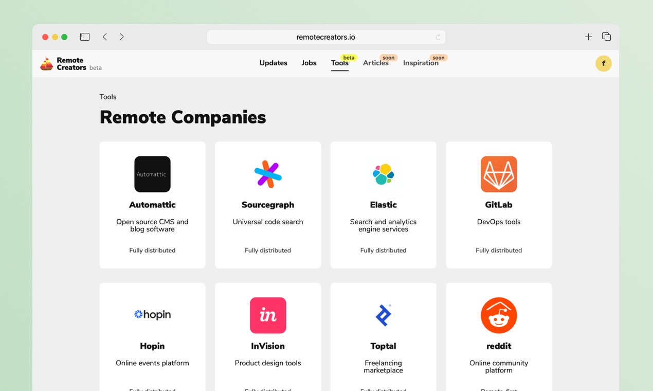 Remote Creators is the network of remote creative people that has been built in public. It's started with the curated list of the freshest remote creative jobs and now it's starting to host useful tools for remote and freelance work... and soon articles.