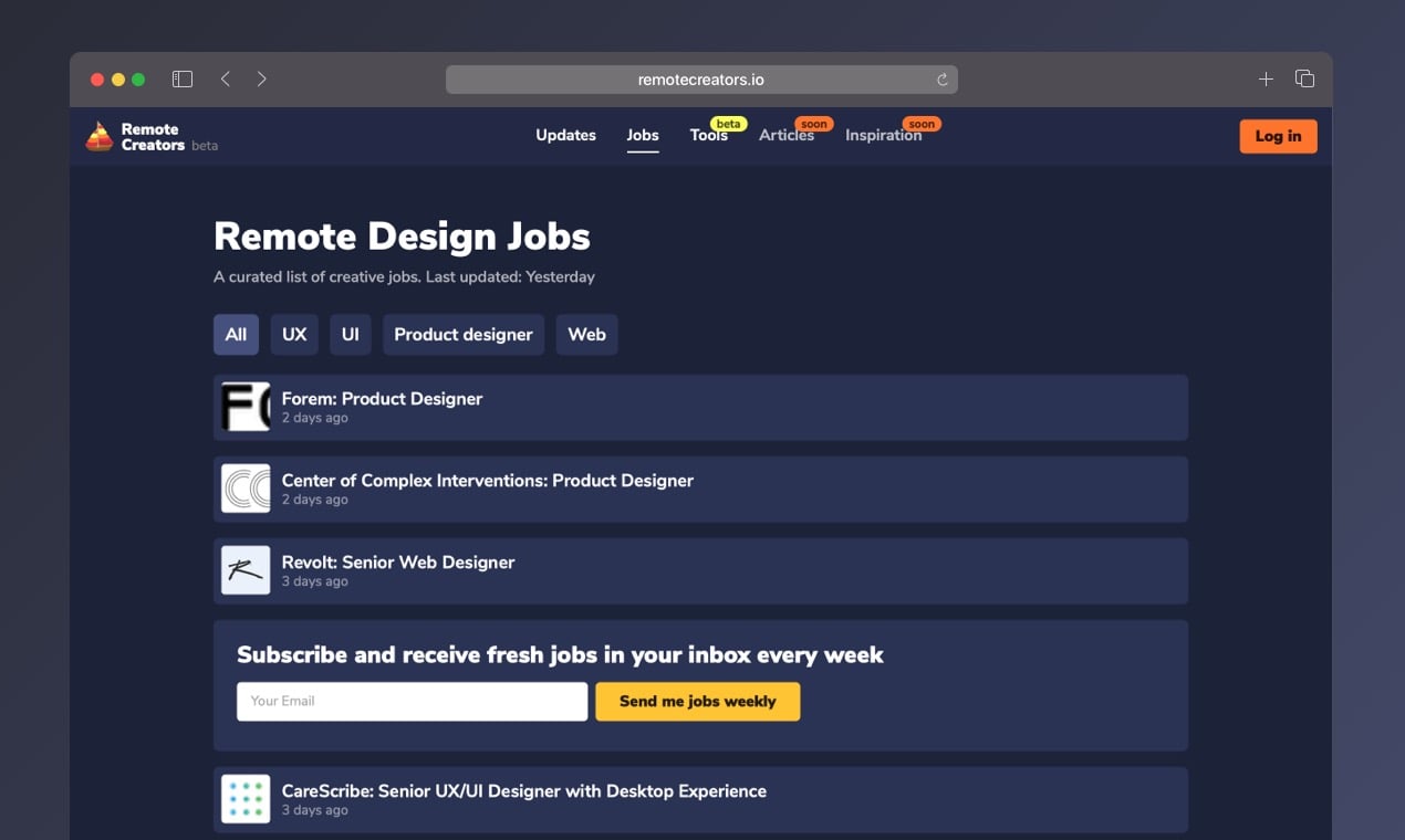 Tools and a list of the freshest jobs for remote creatives.