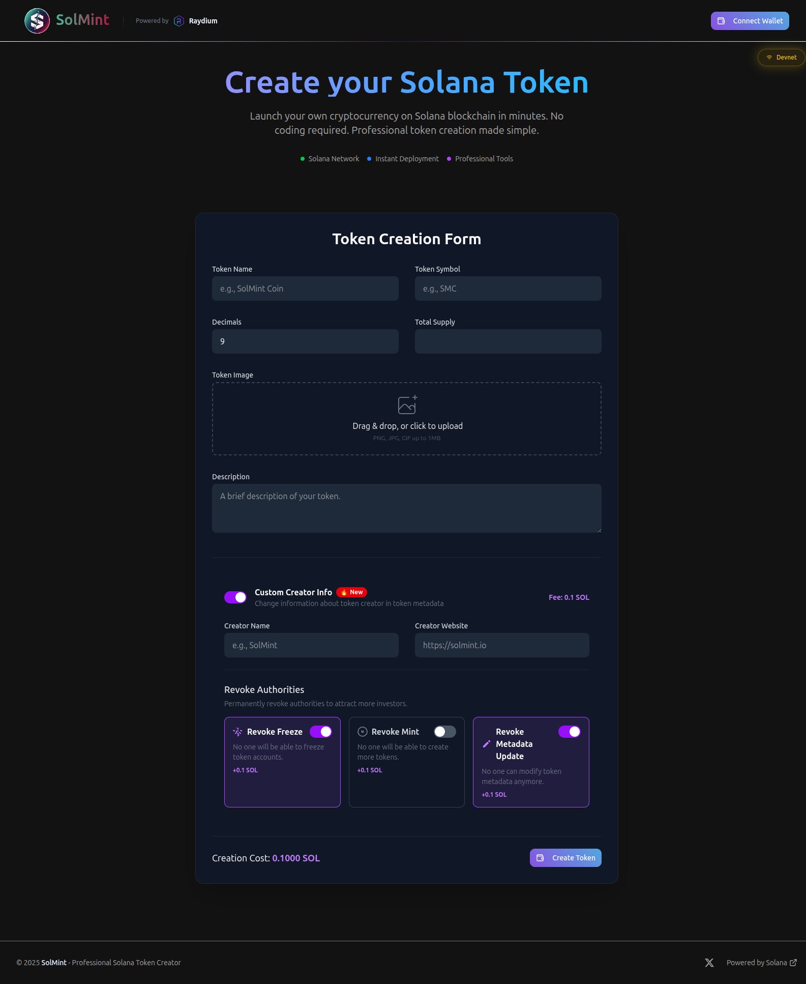 The simplest way to create and manage your own Solana token.