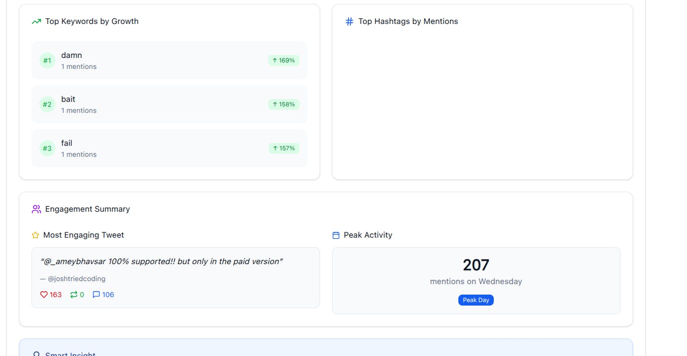 TrendFynd helps you capture high-intent leads from Twitter in real time. Track keywords, hashtags, competitors, and conversations, get sentiment insights, and turn noise into opportunities, all in one simple dashboard.