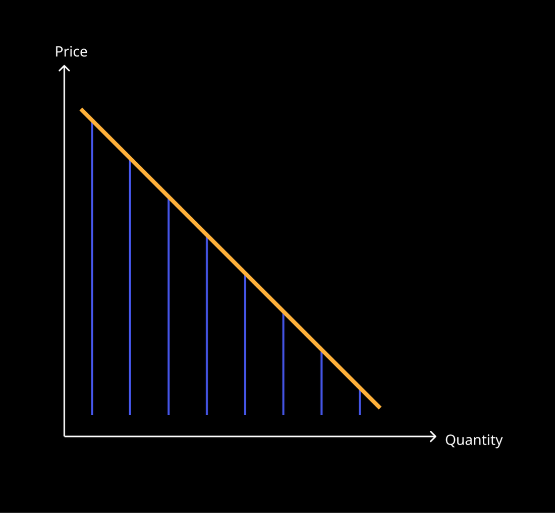 In “NFT Economics,” I argued that the lack of a supply curve for digital goods means that the perception of scarcity is required to drive demand. The perception of scarcity here would come from restricting the time of release. By only releasing digital goods in limited batches one day at a time, sellers could often capture the consumer surplus that they typically can’t for physical goods. Starting with the leftmost purple line above, they would charge the most to the buyer willing to make the most, and gradually, over many days, they would open up greater and greater quantities to those willing to pay less and less. Some calculations would be needed to determine the optimal window for the artificial delay—wait 24 hours before restarting the auction? 48 hours? If the window were too short, it would compromise the perception of scarcity, and if it were too long, it would compromise total profits.