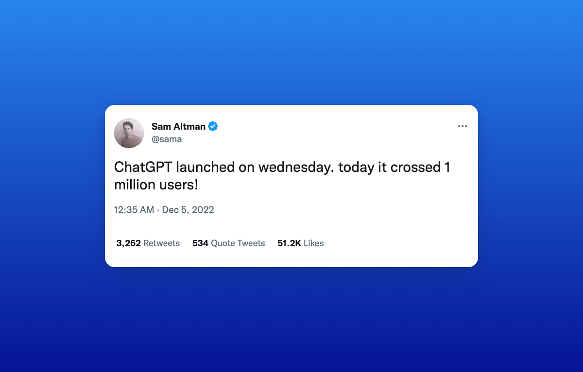 What does this mean? As Altman said in his tweets, “this is something that sci-fi really got right.” ChatGPT gives us the most practical application we've seen yet for using AI in our conversations with customer support, assistants, and more. Or to having AI write our homework, blog articles, grant proposals, (fill in the blank). Some experts even speculate that we may be a few years away from this technology replacing search engines like Google (not everyone agrees).
